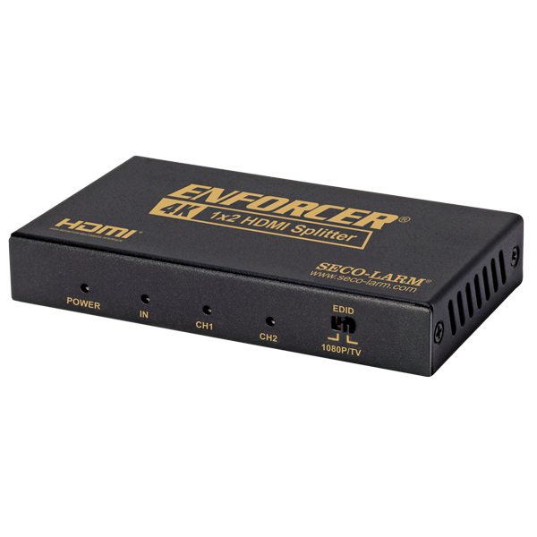 The ENFORCER 4K HDMI Splitters allow for one HDMI source to simultaneously transmit to up to four different monitors. The splitters work with most HDMI devices, delivering the very best in digital audio and video signals with HD resolutions of up to 4K@60Hz. An LED indicator clearly displays power status as well as which outputs are active. The 4K HDMI Splitters can be daisy chained up to four levels for even more outputs.