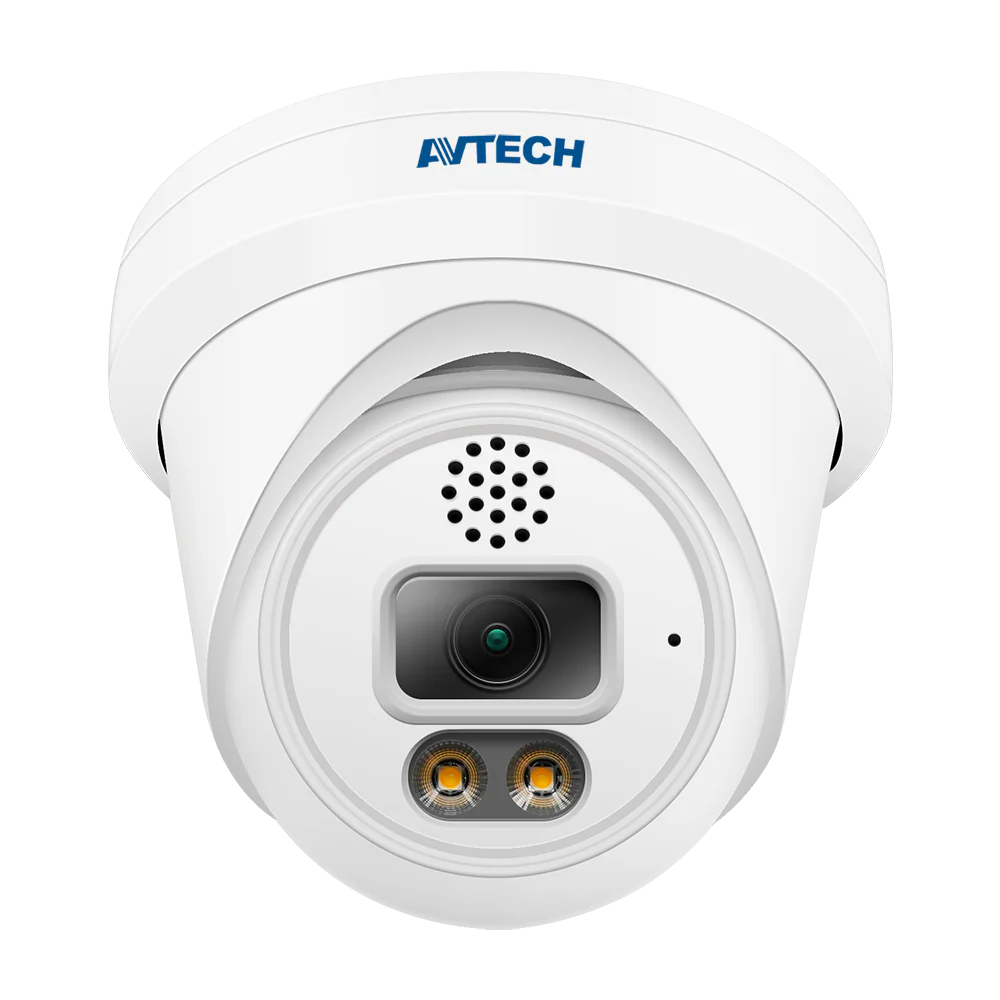 AVTECH DGM8208SVGAT is an AI-based 8MP H.265 dome IP camera with dual lights (IR and warm light LED). It features Starlight visibility for clear color images at night, AI-based human/vehicle detection to avoid false alarms, and built-in siren for deterrence. The camera includes built-in microphone and speaker for audio transmission, WDR, PoE support, and ONVIF standard compliance.