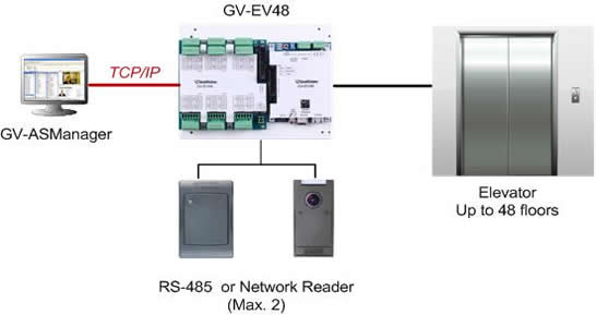 • GV‐EV48 – 48 Floors: Built‐in 48 relay outputs to support up to 48 elevator floors