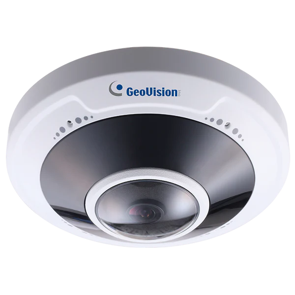 The GeoVision 84-FER572W-0010 is a compact 5MP fisheye IP camera featuring a 1/2.8" progressive CMOS sensor delivering 2592x1944 resolution at 30fps with true 180° panoramic field of view (horizontal, vertical, and diagonal) via its 1.4mm fixed lens (F2.0). With Super Low Lux technology achieving 0.01 lux minimum illumination in color and three IR LEDs providing 20m night vision, it captures comprehensive 360° coverage in extreme low-light conditions. WDR Pro (120dB) and 55dB S/N ratio ensure clear imaging across the entire scene. Housed in an IK10 vandal-resistant metal casing with IP66 weatherproof rating, it operates reliably from -30°C to 60°C. The camera supports triple-streaming H.265/H.264/MJPEG compression with up to 20 simultaneous streams and 40 Mbps throughput. Two-way audio, digital I/O, and edge storage up to 512GB provide robust functionality. Fully ONVIF Profile G/S/T compliant, it integrates seamlessly with GV-VMS, GV-Recording Server, and GV-Eye mobile app for comprehensive 180° fisheye surveillance coverage in indoor and outdoor applications.