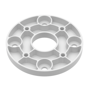 The Hanwha Vision SBP-004PBW is a heavy-duty mounting converter specifically designed to bridge the gap between different mounting footprints for ruggedized PTZ cameras.