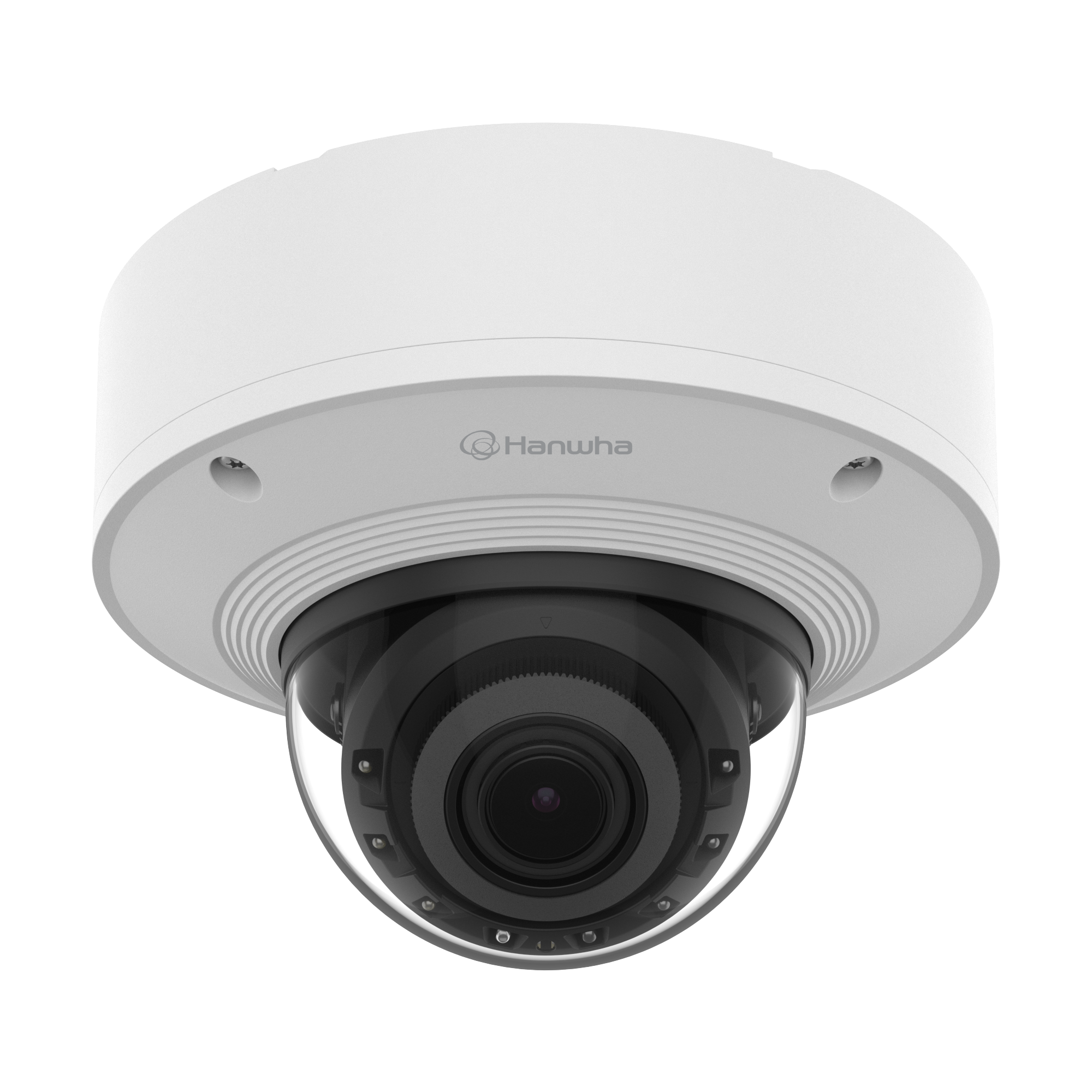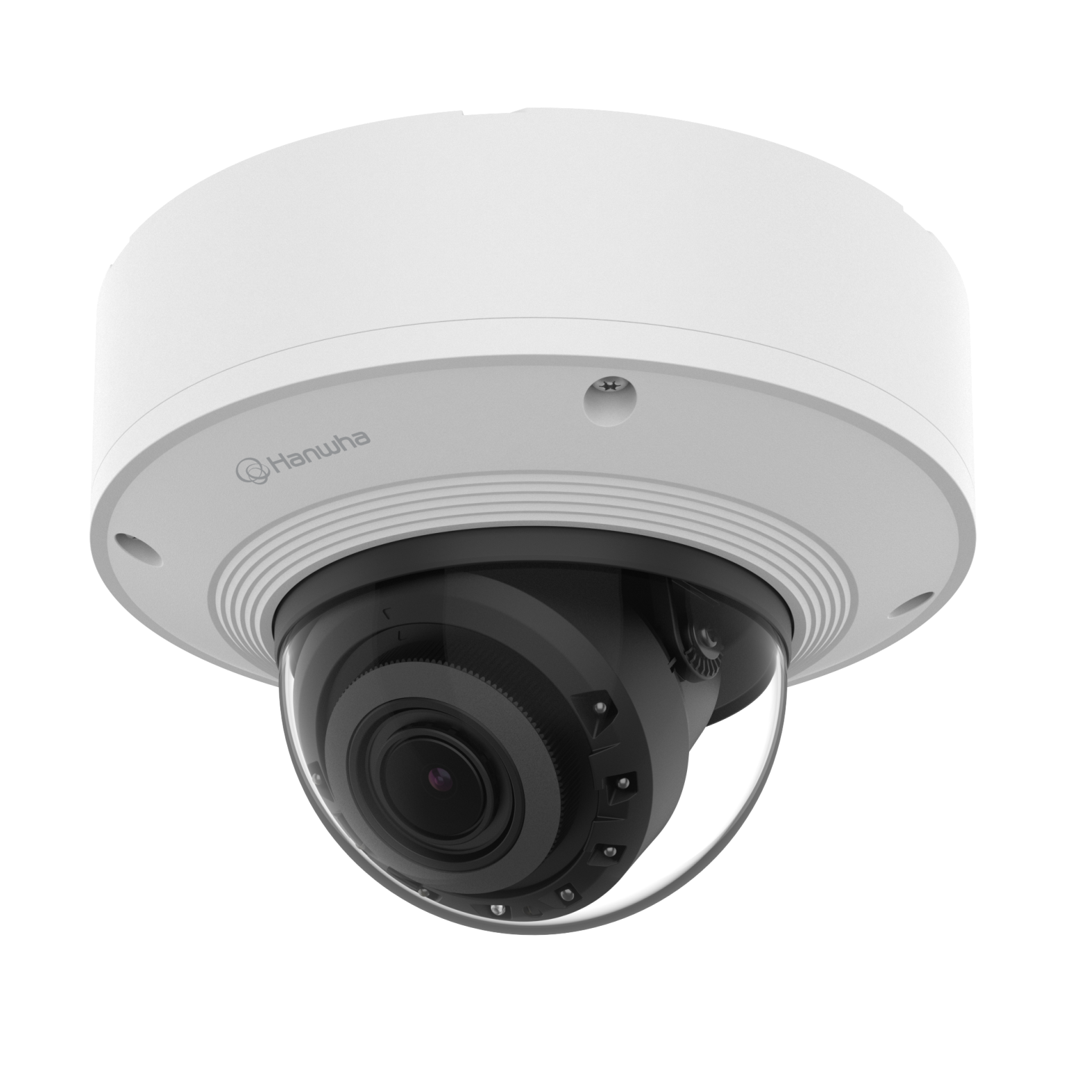 The Hanwha Vision XNV-A8085R is a 5MP outdoor vandal dome AI camera powered by the Wisenet 9 platform, featuring a 1/2.8" CMOS sensor delivering 2560 x 1920 resolution at 30fps. It includes a 3.3~9.3mm motorized varifocal lens with a 99° to 31° horizontal FOV. The WiseIR offers up to 50 metres of night vision with PoE+ and a sensitivity of 0.004 lux in black and white. Video enhancements include WiseNR II, SSNR V, 120dB WDR, DIS with gyro sensor, and defog. AI analytics include object detection of people, faces, vehicles and licence plates, as well as virtual lines, areas and face masks. Social distancing detection, slip and fall detection, and business intelligence are also included, as well as people and vehicle counting, queue management and heatmaps. The camera is rated IP66, IP67, IK10, NEMA 4X, and NEMA TS-2, operating from -50°C to +60°C. It features dual microSD slots up to 2TB total, a FIPS 140-3 Level 3 secure element, and is powered by PoE/PoE+ or 12VDC.