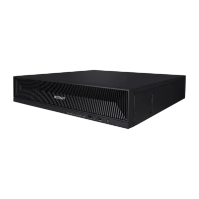 8K NVR (Intel based), 64TB RAW, 64 channels, H265,H264, MJPEG, 8 fixed internal SATA HDDs (10TB max per HDD), ARB (Automatic Recovery Backup), 400 Mbps recording / up to 32 Mbps playback, Dual stream recording, WiseStream technology, HDMI/VGA dual display, max. resolution of 32MP recording/display and fisheye dewarping on web and CMS, web UI 2.0 (no plugins required), AI search (Wisenet AI cameras only), QR Code