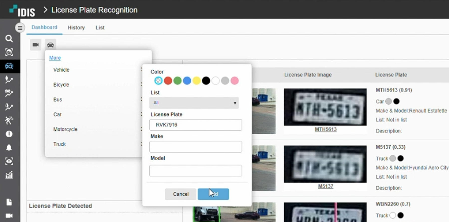 • Vehicle Analytics: License plate recognition (LPR), speeding detection, illegal parking, and recognition of over 2,000 car makes and models.