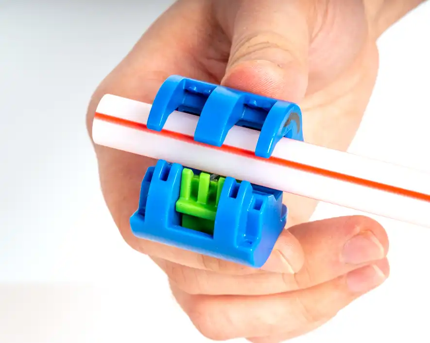 • Wide jaws curls around the microducts, holding them in place while scoring