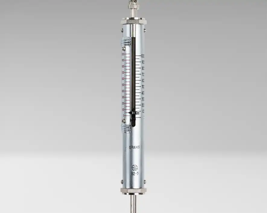 The GPP-1 Push-Pull Force Gauge is a compact, precision, tubular-type mechanical force gauge with a slender design that allows it to be used in confined spaces for measuring push-pull forces. Graduated in grams, this Push-Pull Force Gauge measures up to 1000 g (35.27 oz). The precision springs are individually calibrated and checked with dead weights. Full-scale accuracy and factory calibration are held to ±1 graduation. These force gauges can also be used to test belt tension in ATMs.