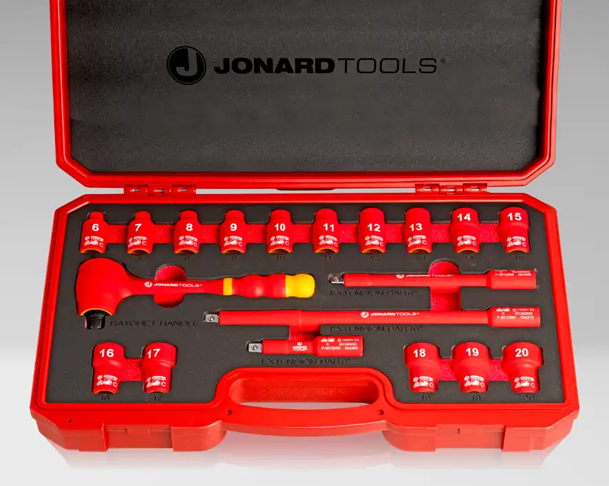 The INSS-19M Insulated Socket Set includes 15 sockets (6–20 mm), three extensions and a 72-tooth ratchet, offering a comprehensive solution for a wide range of applications. It has been rigorously tested for protection up to 1000 V AC and features dual-colour insulation for reliable protection.