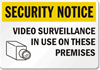 Security Notice - Video Surveillance In Use On These Premises 18 x 12