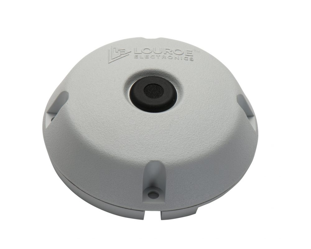 The Verifact Model A is an omni-directional, low impedance, electret condenser microphone with built-in preamp for producing line level audio. It is housed in a high impact antistatic ABS dome designed for ceiling or wall mounting. Normal pick-up pattern is approximately 15' from the microphone location, all directions, or within 30' diameter circle.