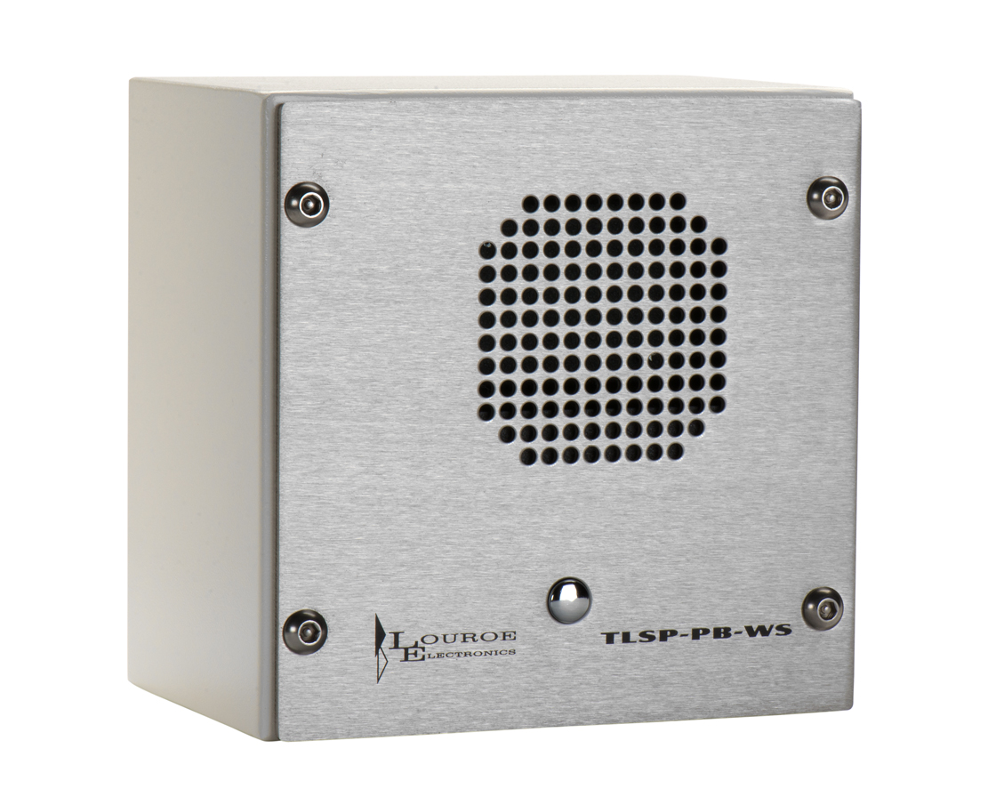 Models TLSP-F and TLSP-S are two-way talk/listen speaker/microphones mounted to an 11 gauge stainless steel faceplate. A special designed tone path protects both the speaker and microphone from vandalism. When interfaced with a Louroe Base Station, these units provide 2-way talk/listen using an electret condenser microphone and a 3” speaker, all in the same housing. The TLSP-F/TLSP-S can be wall or ceiling mounted.