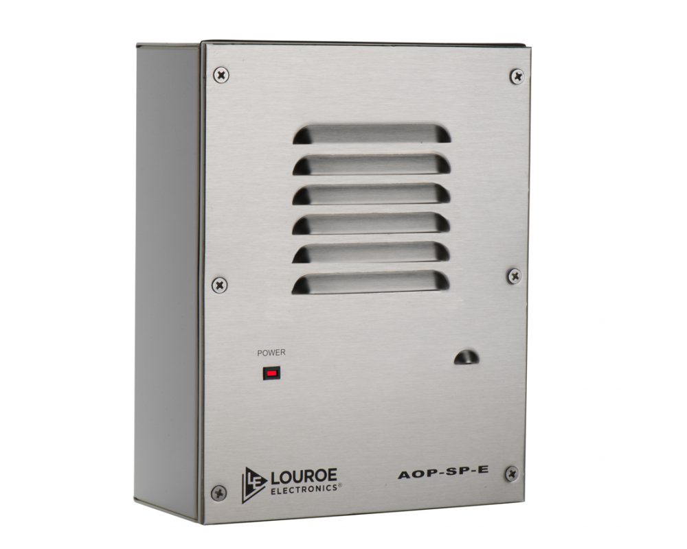 Model AOP-SP-E is a wall mount speakerphone designed to interface with various modes of audio/video transmission systems. They provide bi-directional audio to the receiving device (DVR, PC soundcard, IP Camera, etc.). The AOP-SP-E contains a built-in electret condenser microphone and a 4” speaker. Also it has control potentiometers for adjusting the sensitivity of both transmitted and received audio. AOP-SP-E comes with both back boxes for Flush and Surface mounting to a wall. The unit is weather resistant and maybe used for outdoor applications.