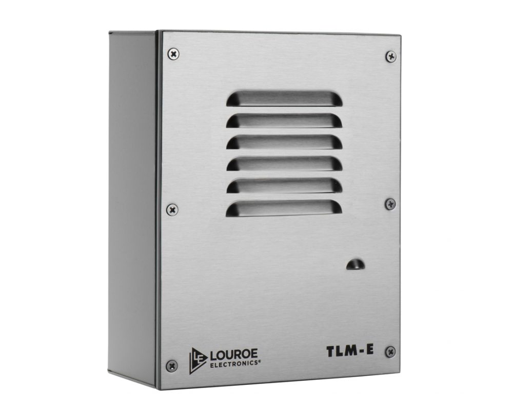 Models TLM-E is a two-way speaker/microphone with an electret condenser microphone and 4” speaker, all within one housing. As part of a Louroe audio system, It provides two-way communication between the remote area and the audio receiving device (Louroe Base Station, etc). Provided with the unit are plastic back box for flush mounting to a wall and metal back box for surface mounting. Can be used for outdoor applications. This unit is weather resistant.