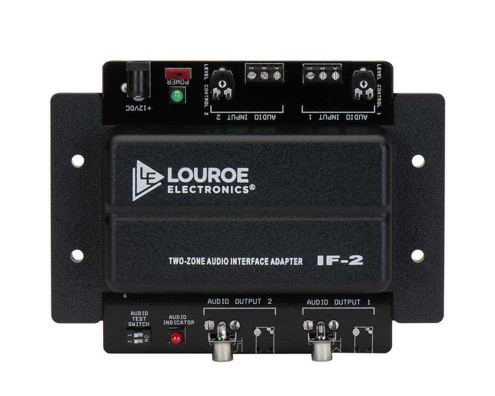 Louroe Model IF-2, IF-4 and IF-8 are audio interface adapters designed for connecting up to two (IF-2), four (IF-4) or eight (IF-8) Louroe microphones to a DVR or other recording devices that have multiple audio inputs. The units contain RCA outputs (per microphone) for accommodating either an RCA input or a 3.5mm (mini jack) input connection to a DVR, IP network camera, video server, etc. using the connector cables supplied. In addition, the IF2, IF-4 and IF-8 receive wiring from the Louroe microphones, provide power and contain a variable gain adjust per output to prevent the overdriving of the DVR, etc. All Louroe microphones are compatible with these three units.