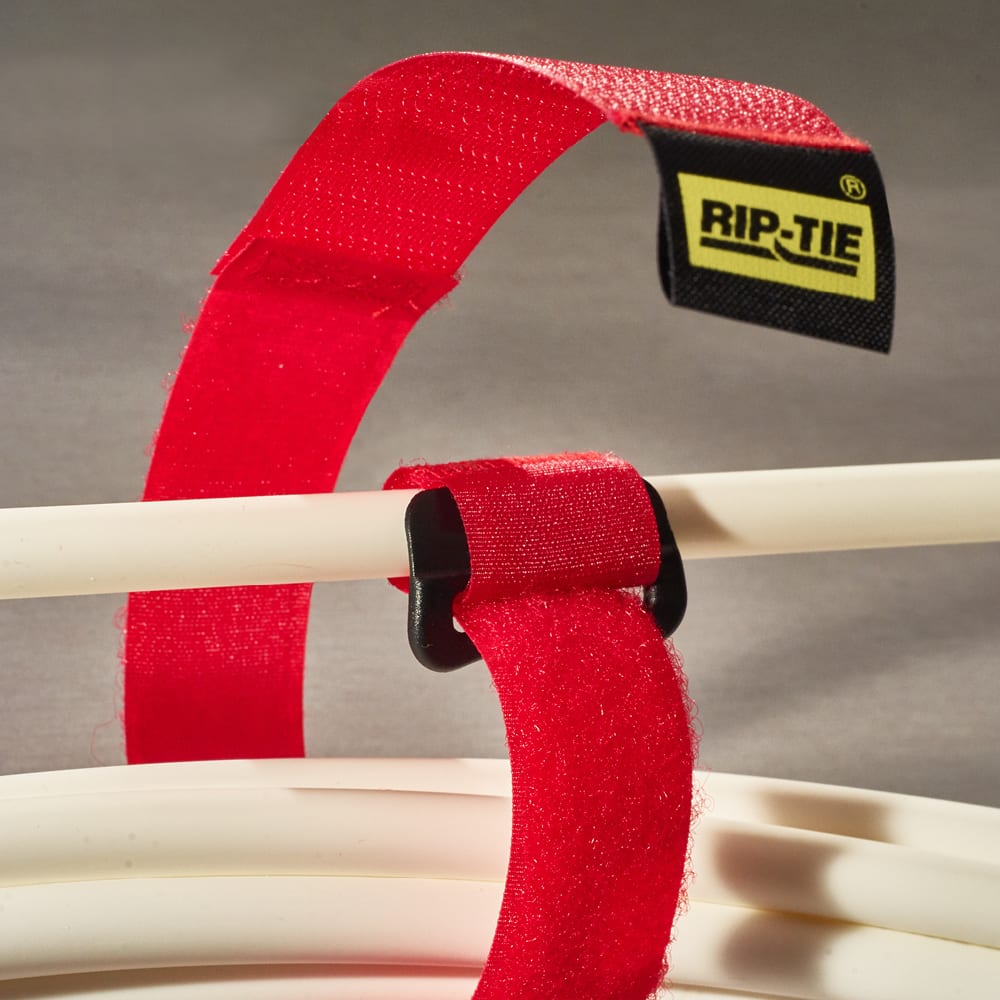 The CableWrap with Buckle locks cables into place with a semi-permanent attachment. It can be used with a variety of cable diameters. Medium duty. Tested for a minimum of 2,000 release cycles. Our original patented tie, one end semi-permanently attaches to a cable, the other end has a pull-tab to fasten and unfasten the Rip-Tie with one hand.