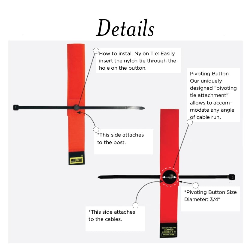 Our uniquely designed Pivoting Tie Attachment allows you to accommodate any angle of cable run. Keeps cables on the same plane and fixed in the same direction.