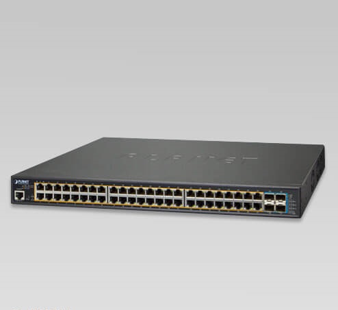 The GS-5220-48PL4X Layer 2 Managed PoE Switch supports both IPv4 and IPv6 protocols, and hardware-based Layer 3 static routing capability.