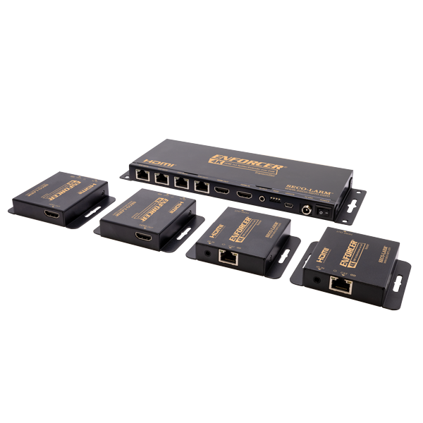 The Enforcer 4K HDMI® 1×4 Splitter/Extender over Cat6 uses an active transmitter and four receivers to extend the range of traditional HDMI® cabling methods by sending video and audio over Cat6. HDMI formats as large as 4K can be transmitted between the units with zero signal loss over a distance of up to 230 ft (70 m) by using integrated circuits in the receivers and transmitter.