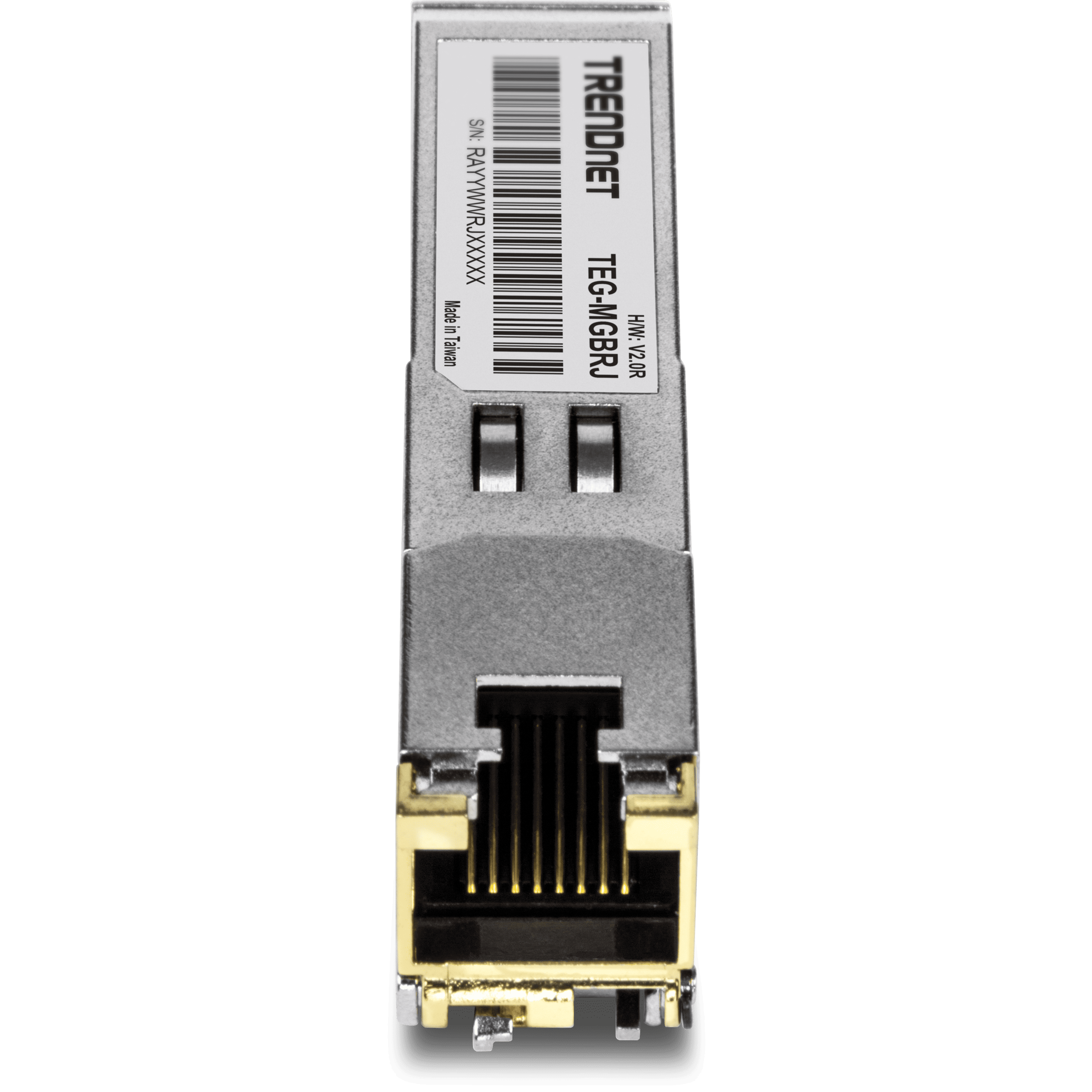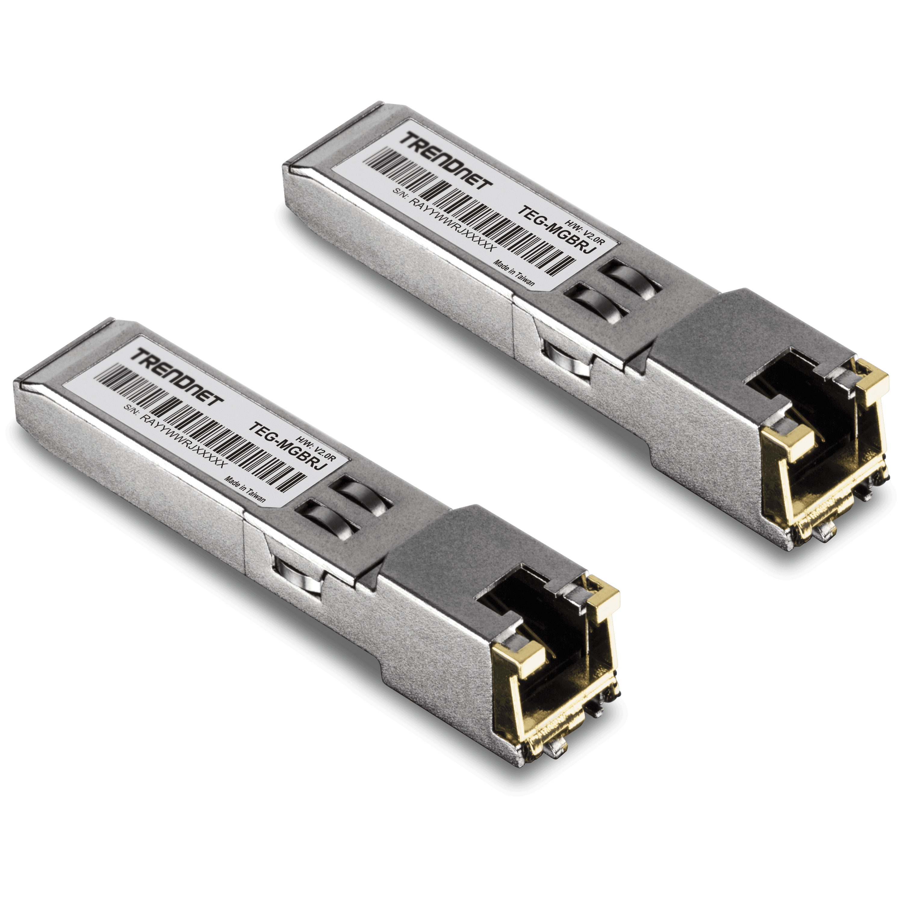 TRENDnet’s 2-Pack 1000BASE-T RJ45 Copper SFP Module TEG-MGBRJ/2 converts a standard SFP port into an RJ45 Gigabit port, providing additional copper connectivity. These SFP modules are compatible with standard SFP ports, which are commonly found in network switches and fibre media converters. Reduce equipment costs by repurposing a switch’s unused SFP ports for copper connectivity.