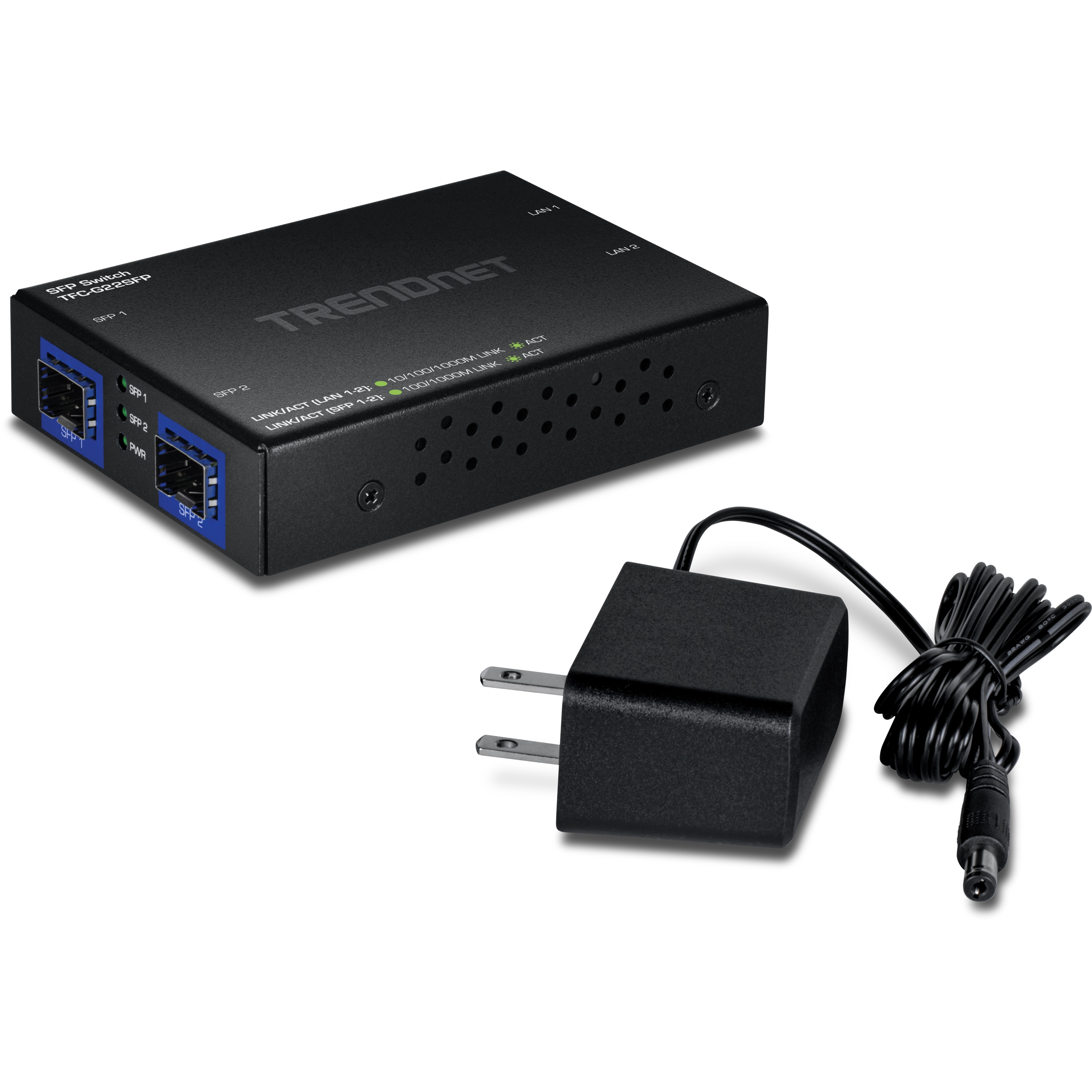 | Package Contents | • TFC-G22SFP • Power adapter (5V DC, 1.5A) |