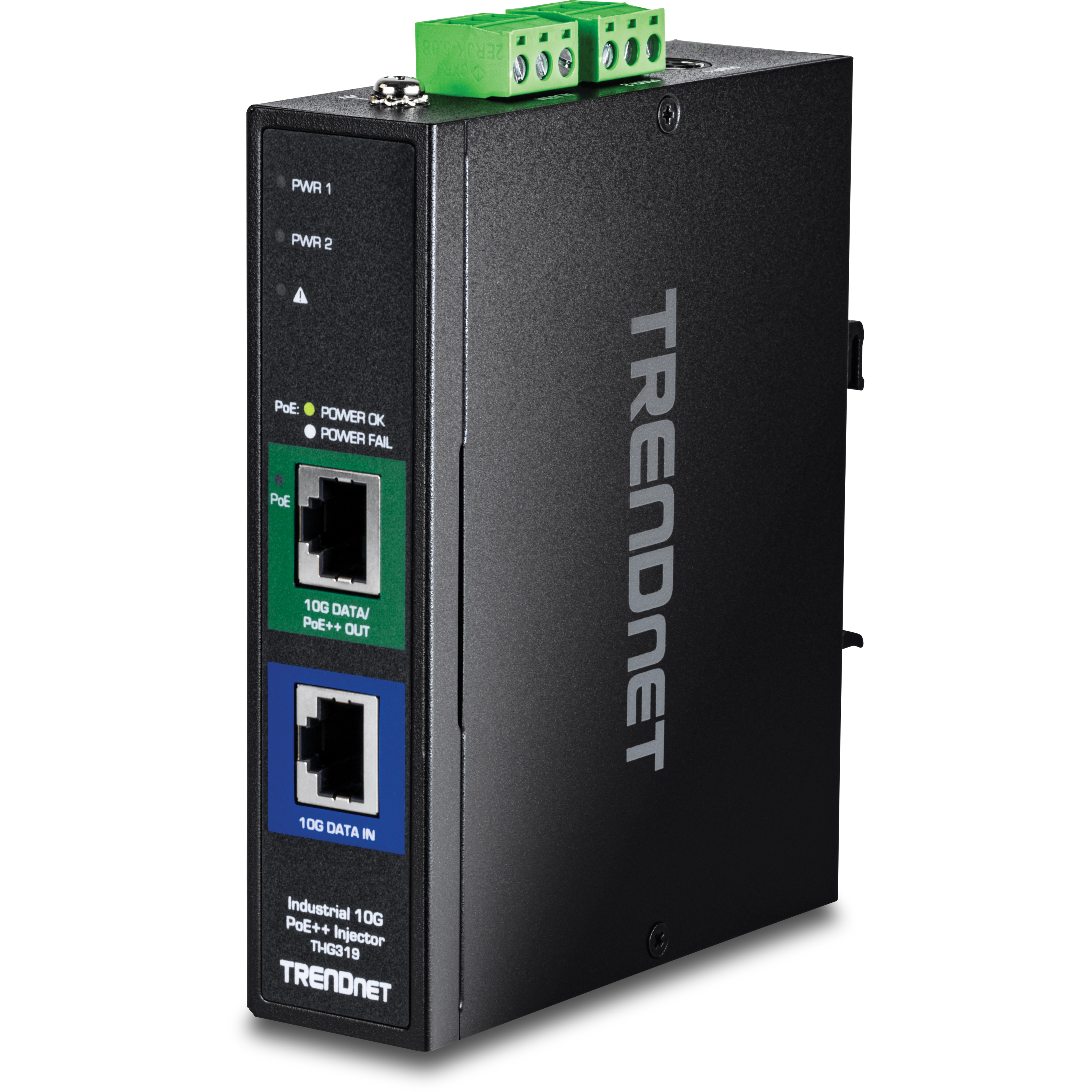 The TRENDnet Industrial 10G PoE++ Injector model TI-IG319 enables users to provide PoE++ power to a non-PoE switch. Simply connect the injector to the switch and run an Ethernet cable of up to 100 metres (328 feet) to network a PoE/PoE+/PoE++ device. This multi-gig industrial PoE++ injector can supply up to 120 W of power to PoE devices. Its fanless design eliminates operating noise and lowers energy consumption. Designed to withstand a high degree of vibration and shock, the industrial 10G injector is equipped with an IP50-rated metal enclosure and can operate within an extreme industrial environment temperature range of -40° – 75° C (-40° – 16758° F).