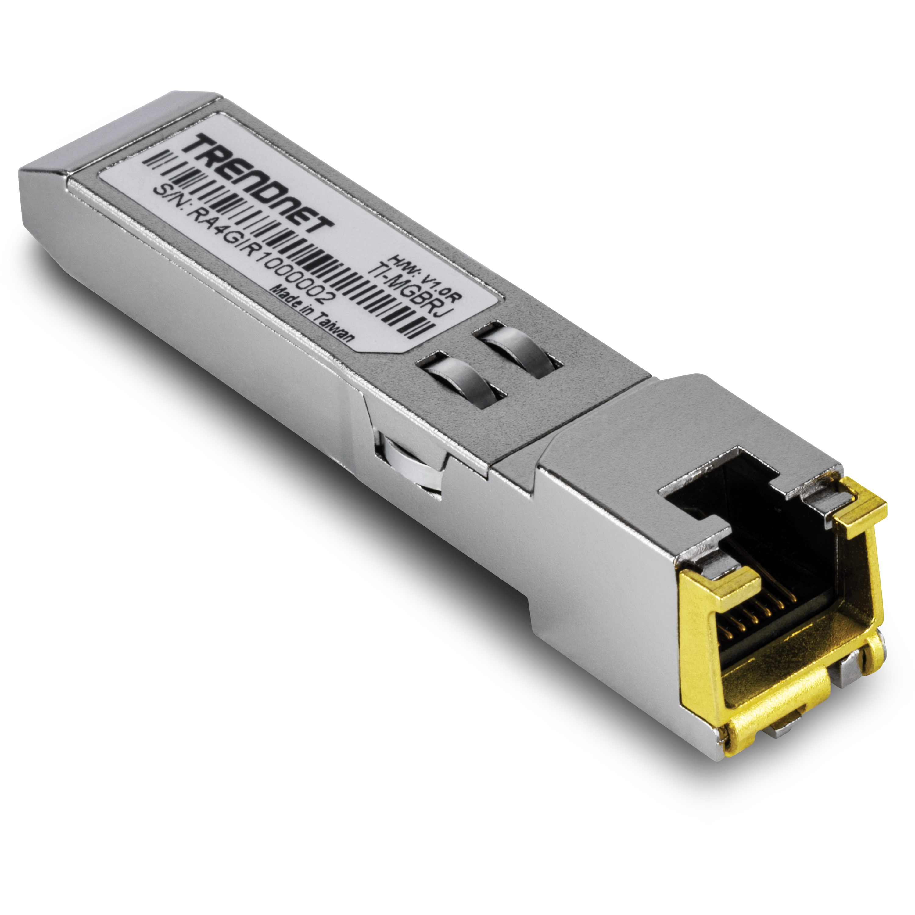 The TRENDnet 1000BASE-T Industrial SFP RJ45 Copper Module TI-MGBRJ converts a standard SFP port into a gigabit RJ45 port, providing additional high-speed copper connectivity. This industrial copper SFP gigabit module is compatible with standard SFP ports commonly found in network switches and fibre media converters. Designed to operate within an extreme temperature range of -40° – 85° C (-40° – 185° F), the TI-MGBRJ industrial copper SFP is well suited to industrial environments. Reduce equipment costs by repurposing a switch's unused SFP port to provide reliable copper connectivity with TRENDnet's gigabit industrial copper SFP module.