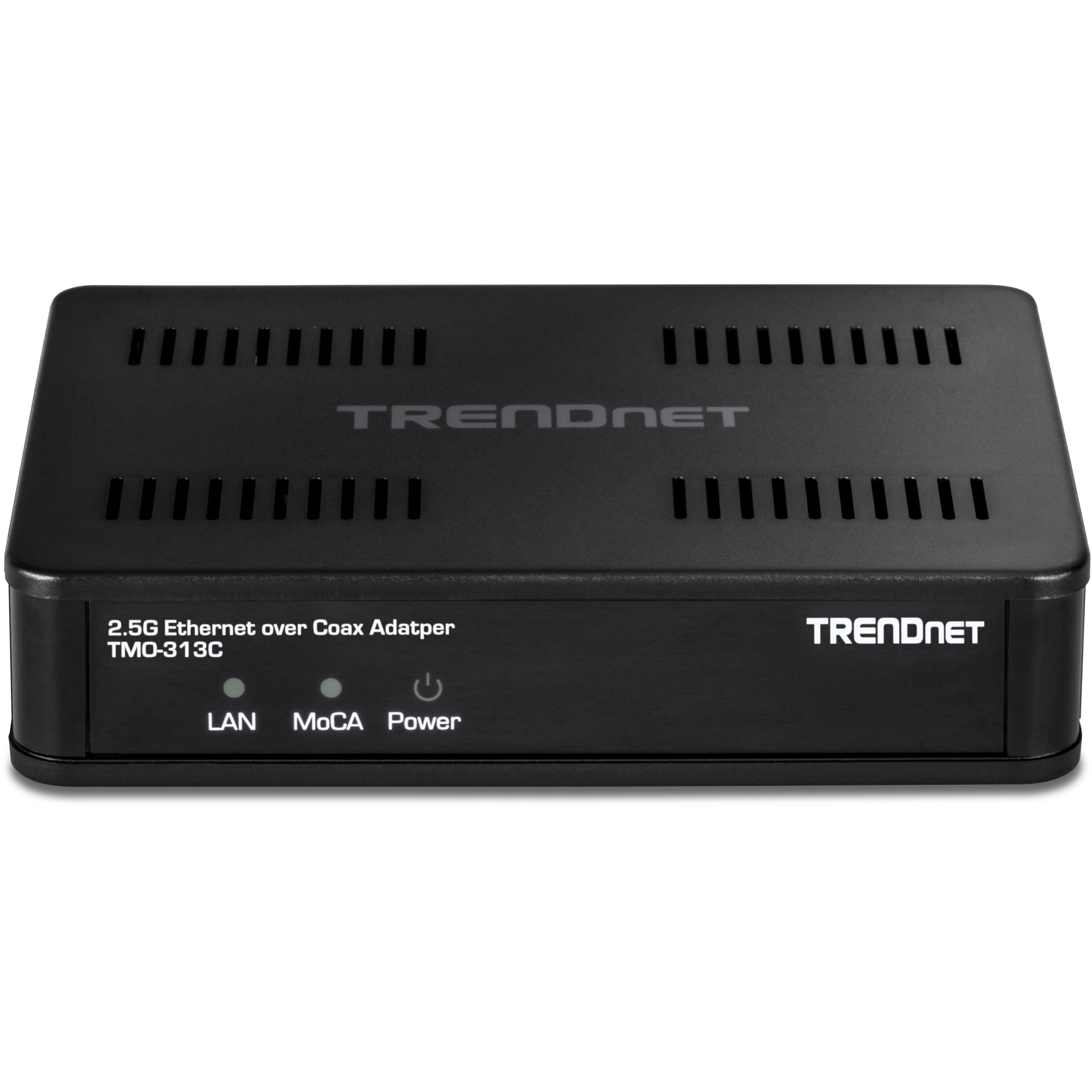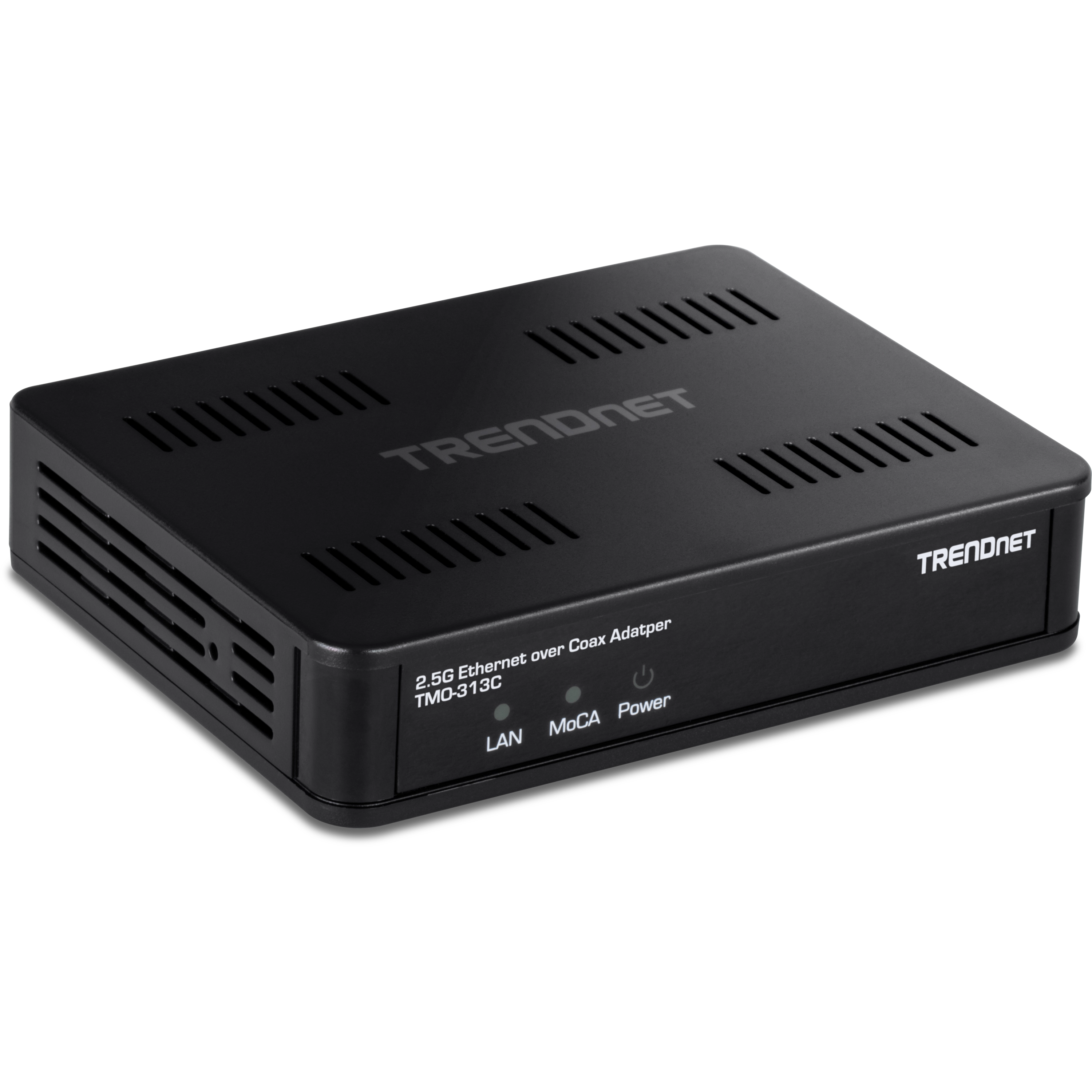 TRENDnet’s MoCA 2.5 Gbps Ethernet over Coax Adapter model TMO-313C uses your existing coaxial cables to extend a high-speed, building-wide triple play network throughout your home or office. These compact adapters are designed to support MoCA 2.5 deployment for digital TV, high-speed internet and VoIP single-access subscription services. They are compliant with the Multimedia over Coax Alliance (MoCA 2.5) standard and feature improved packet error rate technology, delivering consistent voice and video bandwidth with lowered latency.