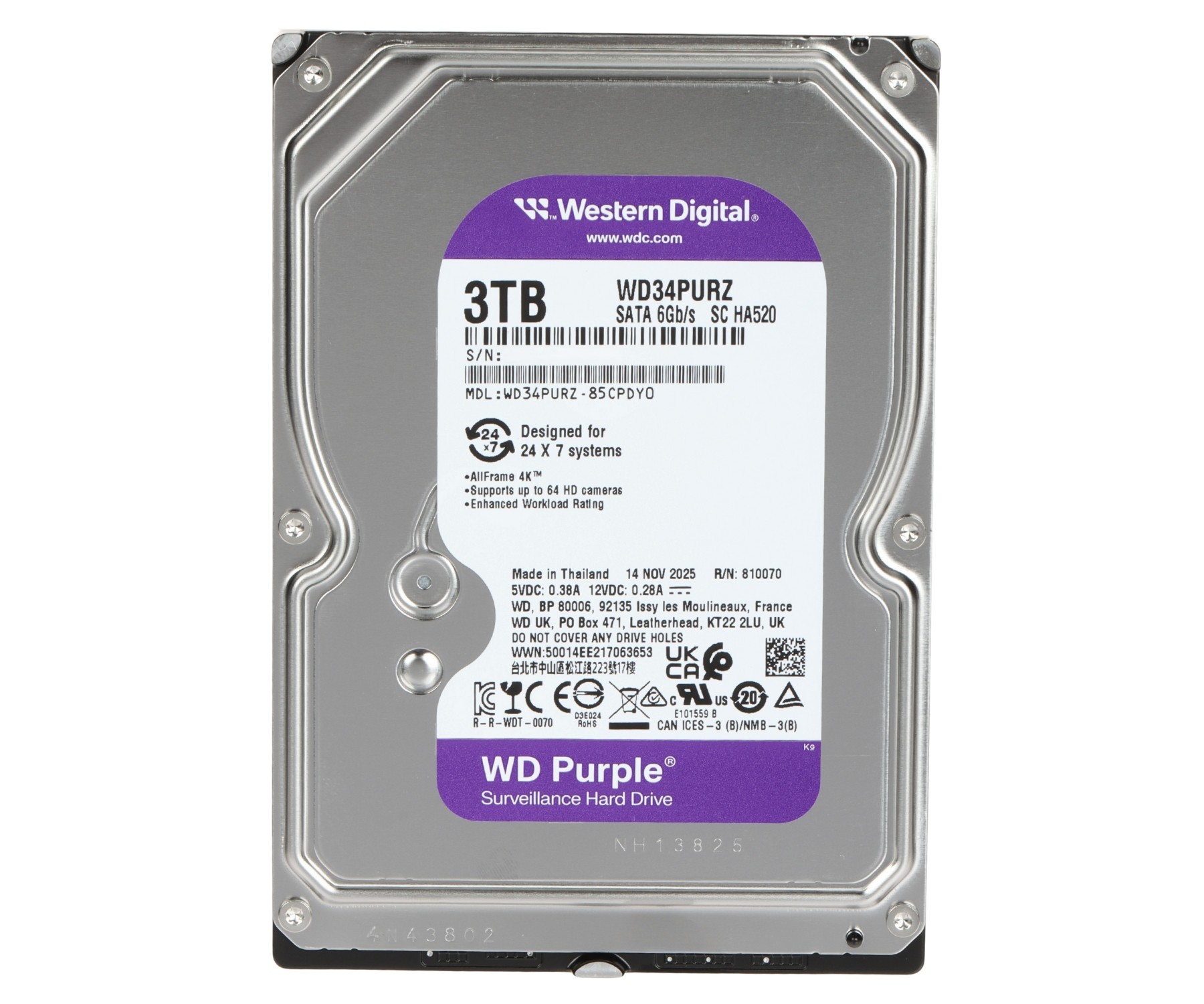 • WD AllFrame™ technology delivers optimizations for write-intensive, low bit-rate, high stream-count workloads typical to mainstream surveillance applications