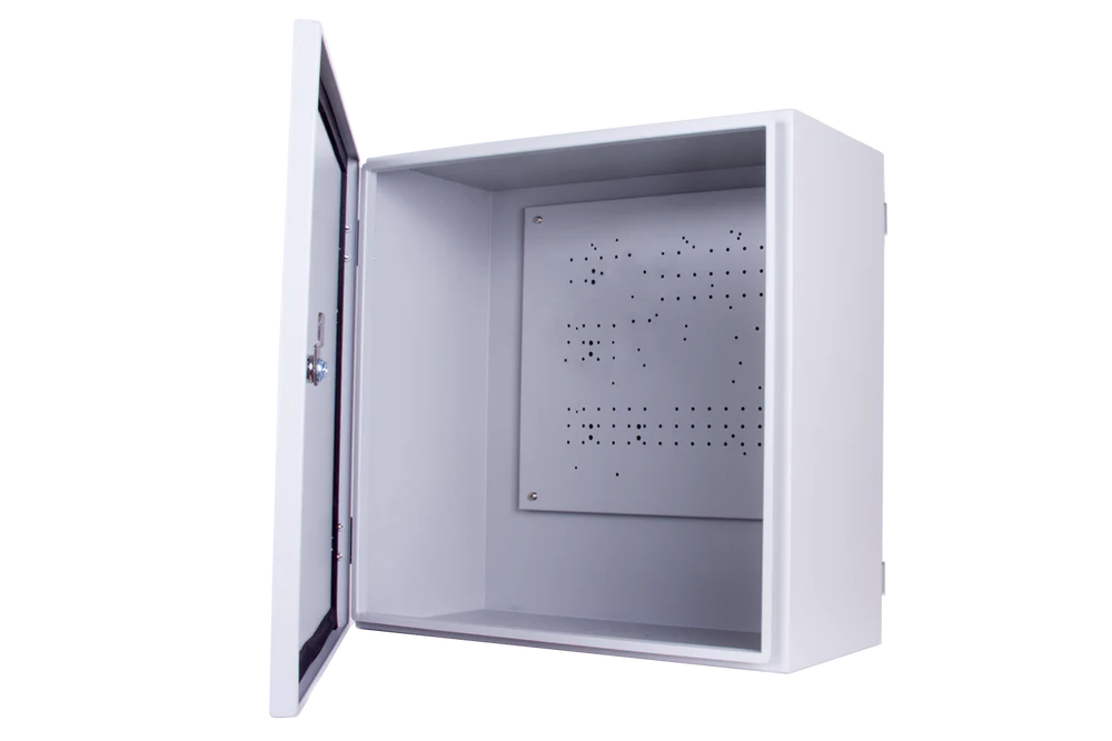 • Easy Wall or Pole Mounting: The back of the enclosure features built-in mounting holes