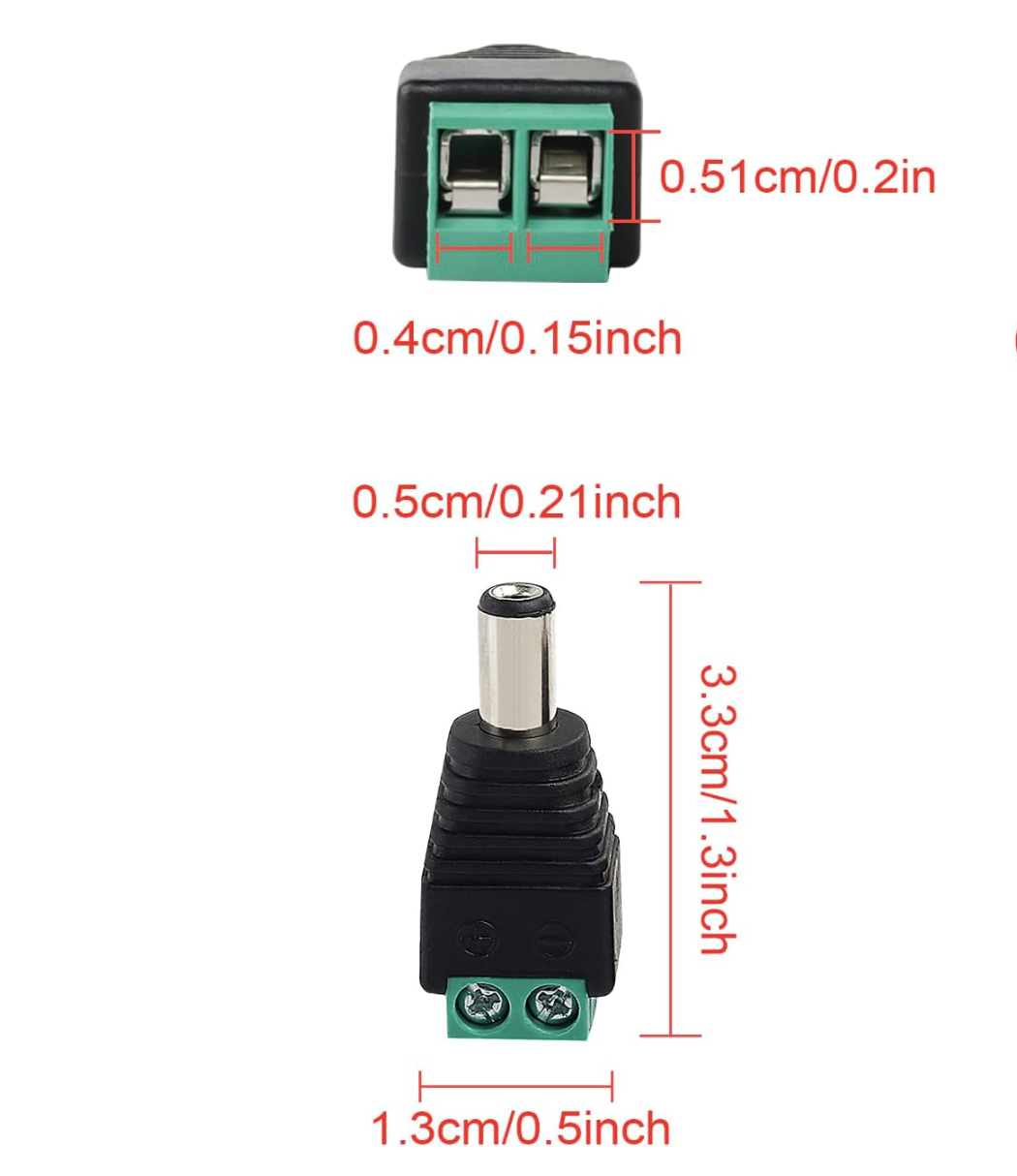 Connector type: 12VDC Screw Terminal Plug Female Power Adapter Kit.