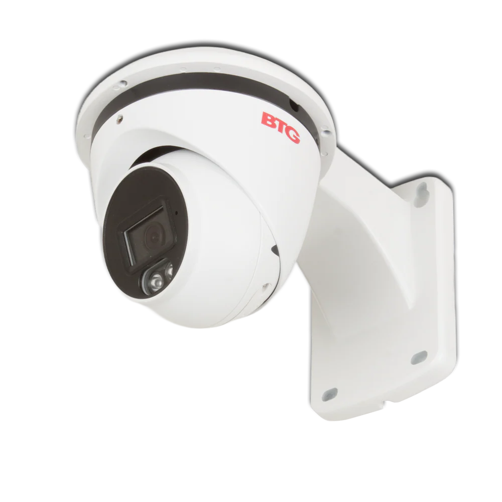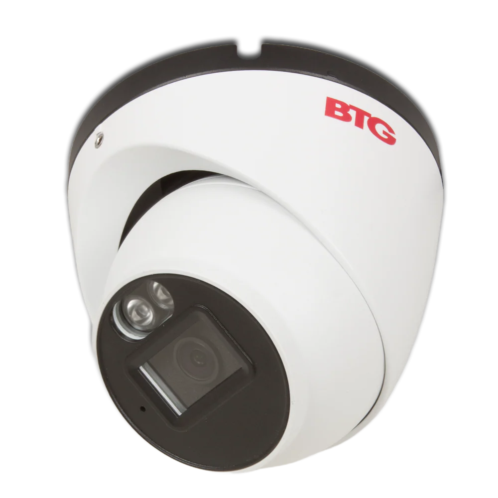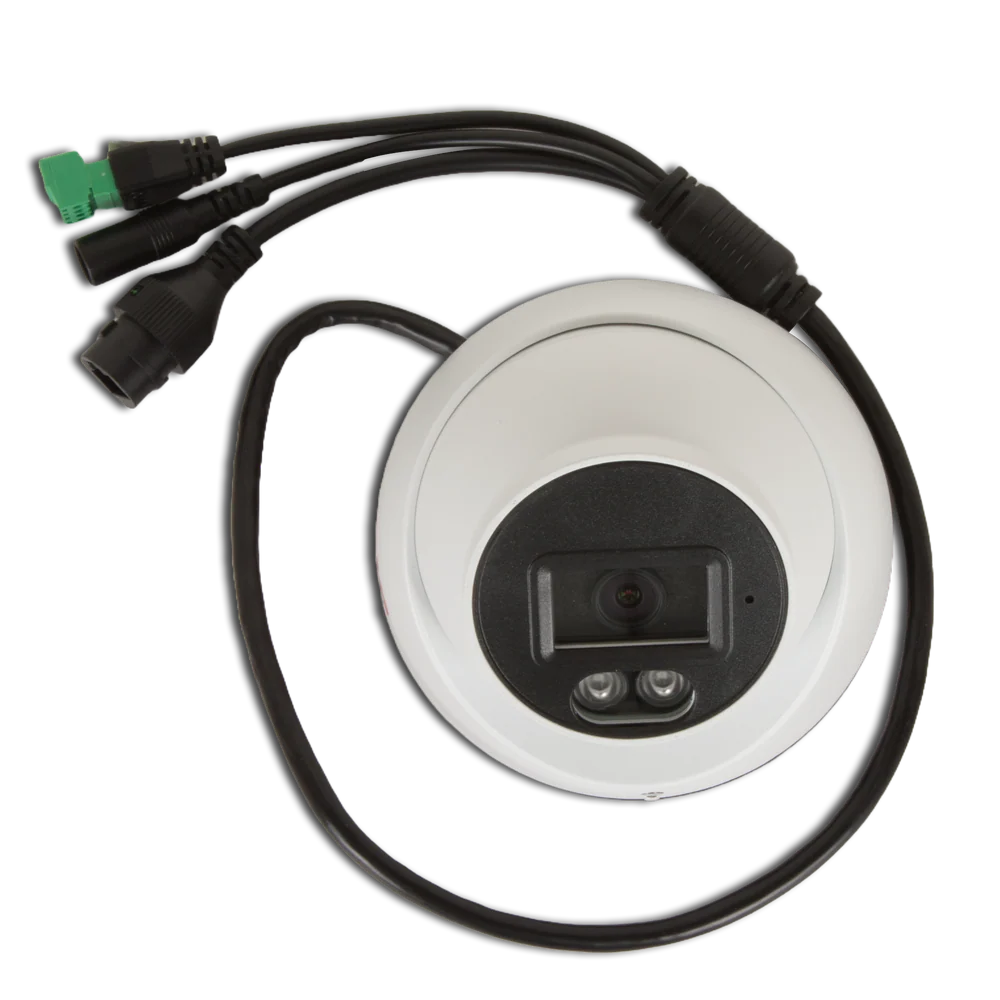 H.265 8MP (4K) fixed-lens IP66 IR eyeball camera with a 2.8 mm lens, PoE, 12 VDC, micro SD slot, IR night vision up to 65 ft, built-in microphone, NDAA compliant, ONVIF.