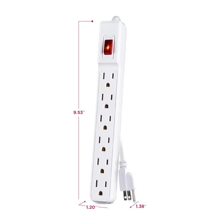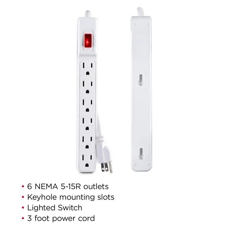 Perfect for powering small appliances and household electronics, the general-purpose GS60304 Power Strip from CyberPower provides six grounded, standard spaced outlets and a three-foot power cord. With this power strip, multiple electrical devices can share a single AC wall socket. A 15-Amp circuit breaker prevents overloading.